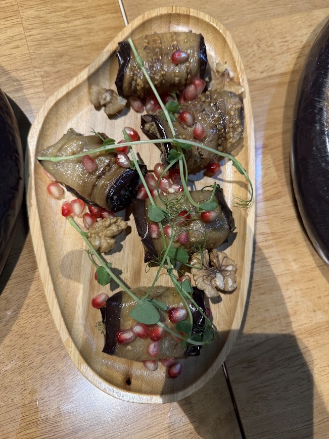 אנחנו הזמנו מנות פתיחה סלטים, חצילים ואגוזים