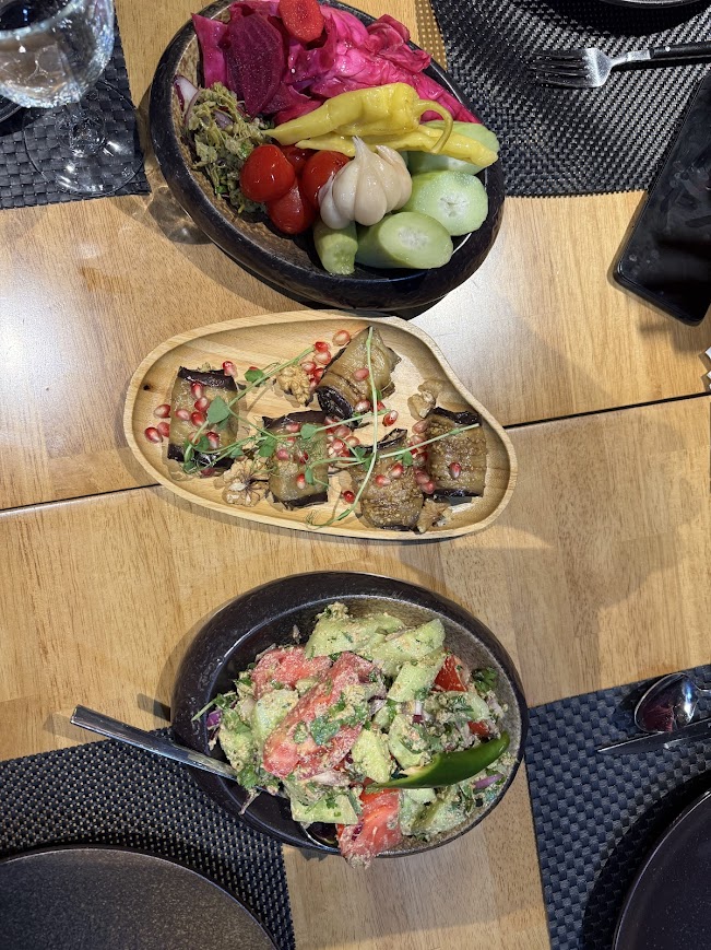 אנחנו הזמנו למנות ראשונות, לחם גאורגי, סלט חצילים, סלט ירקות גאורגי